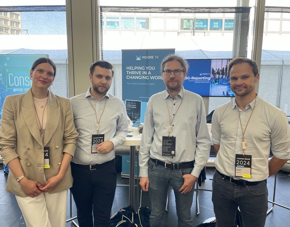 Zwei Tage voller Impulse, Austausch und smarter Lösungen, Moore TK war als langjähriger Lucanet Premium Partner bei der Lucanet.World 2024 im Berliner Congress Center dabei. Unter dem Motto „Lead with Ease“ drehte sich alles um die Zukunft des Finanzbereichs, von Konsolidierung über Tax Reporting bis hin zu ESG und KI.