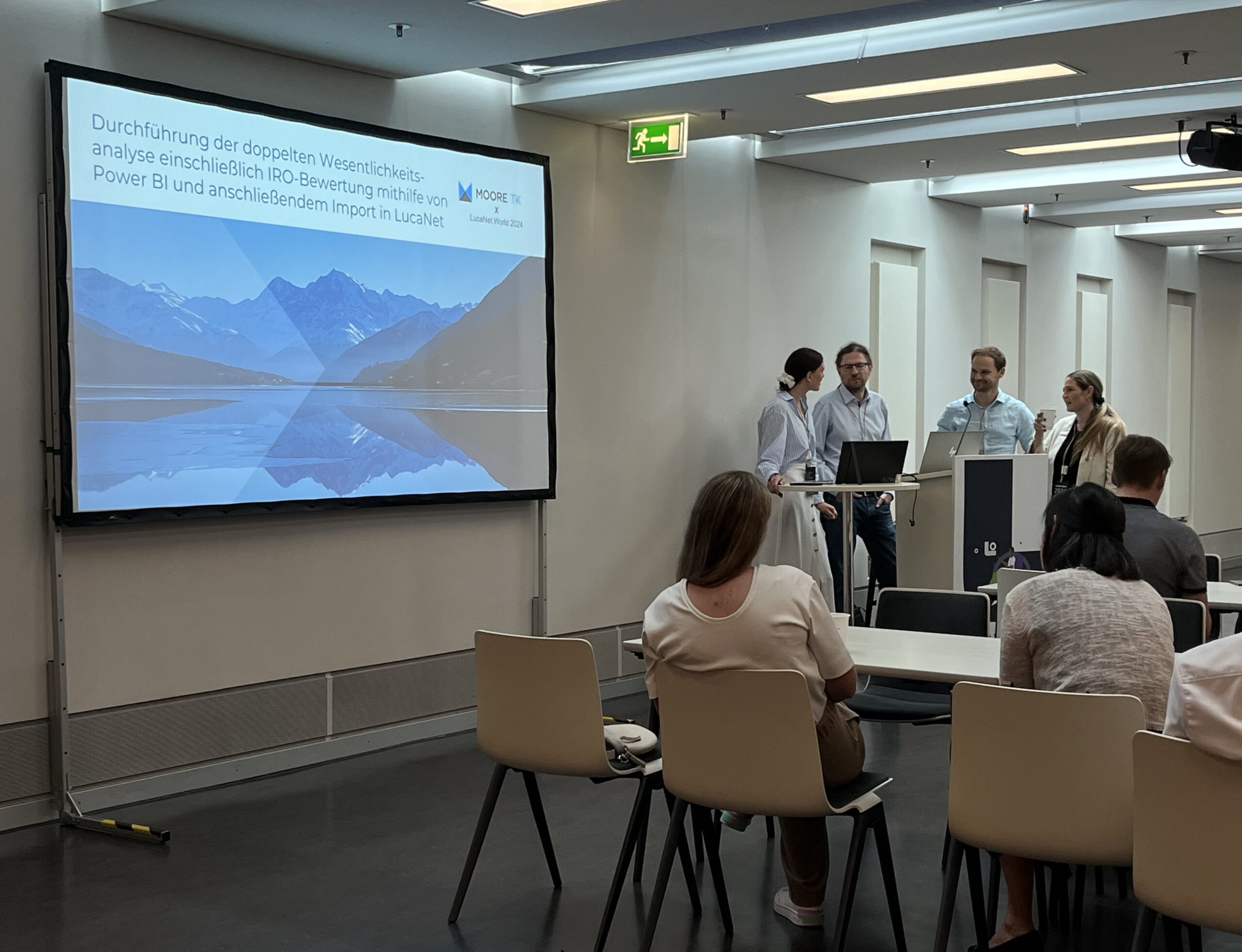 Ein besonderes Highlight war unser Workshop zur Durchführung der doppelten Wesentlichkeitsanalyse inklusive IRO-Bewertung mit Power BI und dem anschließenden Import in Lucanet. Unsere Expertinnen und Experten Hanna Swarowsky, Dr. Stefan Hofmann und Christian Pätzold zeigten praxisnah, wie regulatorische Anforderungen effizient umgesetzt werden können. Die Resonanz war groß, das Interesse an ESG-Themen und digitalen Reporting-Lösungen wächst spürbar.